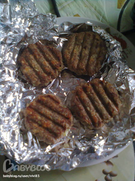 Блюда из фарша, котлетыПодарила мне моя сестричка на др. вафельницу))и нашлись в коробочке еще и пластиночки гриль....
