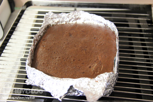 1. Основа - мой любимый Трюфель. Я задумывала маленький тортик, поэтому брала полпорции. Форму делала сама из фольги))