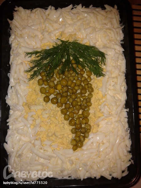 4 - тертые яйца (я желток натерла в серединке, а белок по бокам)