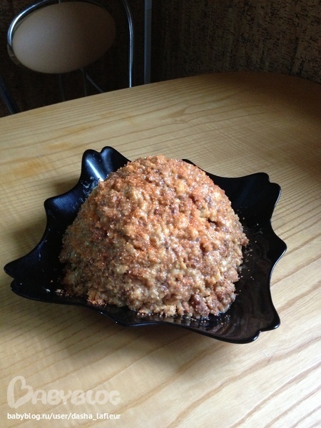 7. Перекладываем полученную массу горкой на блюдо, убираем в холодильник на 30-40 минут.