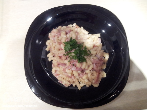 Делаю почти так же. Только без муки и сливочного масла, просто сливки и бекон. А макарошки беру спагетти. Очень вкусно и быстро! Улетает на ура!!!
