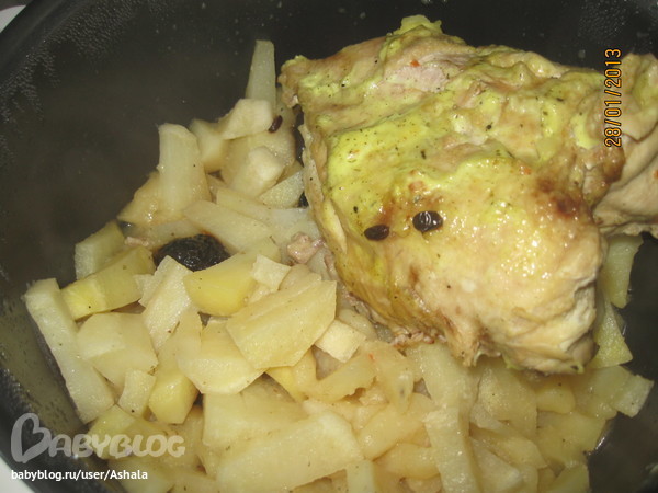 P.S. На фото курочка сверху потому как первая картошечка мужа не дождалась и "пришлось" готовить её снова.
