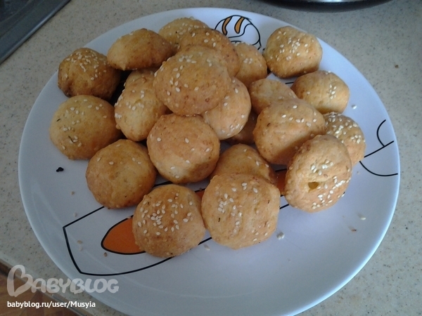 дело было так, муж купил сыр из топленого молока на пробу, а мне как то он не понравился, запах у него спецефический, как из под коровы) вот и пришлось в срочном порядки его пристраивать, а то ушел бы в помойку через какое то время, кстати в выпечке запах испарился... от себя в рецепт добавила пару ложек без горки сахара и ложечку разрыхлителя и чуток сладкого красного перца, ничего в холодильник не убирала, тесто получается мягкое как пластелин, я прям кусочки с грецкий орех катала и между лодошек сплющивала в лепешечки, клала на пергамен без масла и сверху еще чуток вилочкой припющивала чтоб бороздки были, правда они практически ушли бороздки, сверху посыпала кунжутом и французкими травами с солью из мельнички, в общем обалденные пышечки вышли, они в духовке приподнялись, сверху хрустящая корочка, внутри чуть расплавленные, если чуть дольше выдержать, будут полностью хрустяшки, но мне итак было вкусно и деткам кстати тоже понравились.