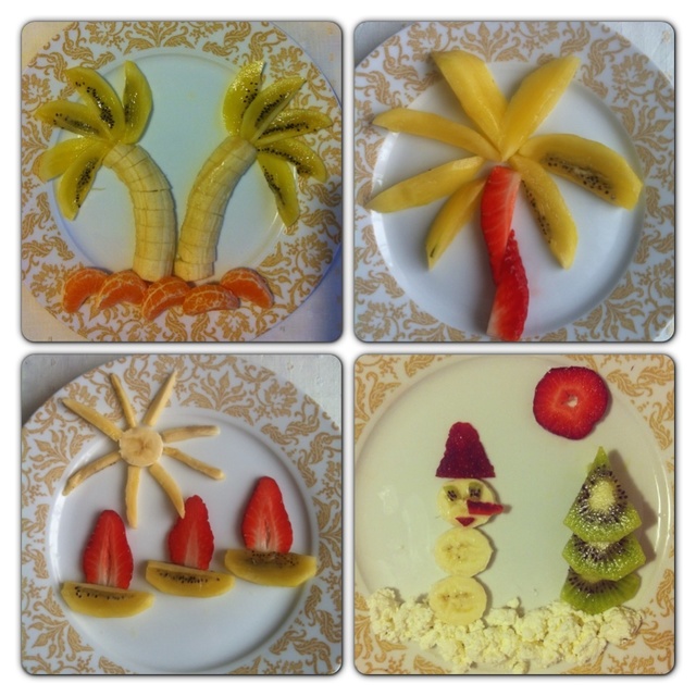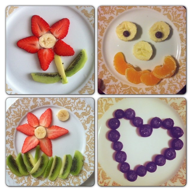 Фрукты, ягодыУже показывала, как мы кушаем ягодки. Вот так мы любим фрукты. Обычно такие тарелочки я делаю на завтрак и полдник. Сьедается все ;) и ребенку весело, и маме не скучно :)