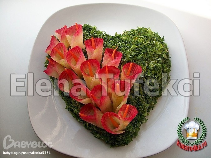 Пошаговое приготовление и украшение салата можно посмотреть :