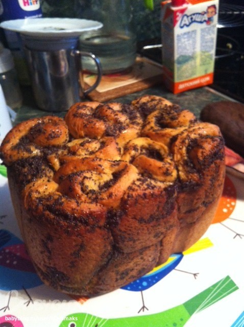 Начинка: мака у меня было примерно 5 стол. ложек, 20 гр слив масла, вода, 100 гр сахара, 2-3 стол ложки яблочного джема или любого конфитюра по вкусу.