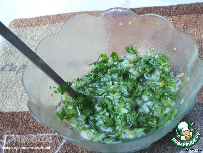 | Посолить, поперчить и добавить цедру лимона. Хорошенько растереть. |