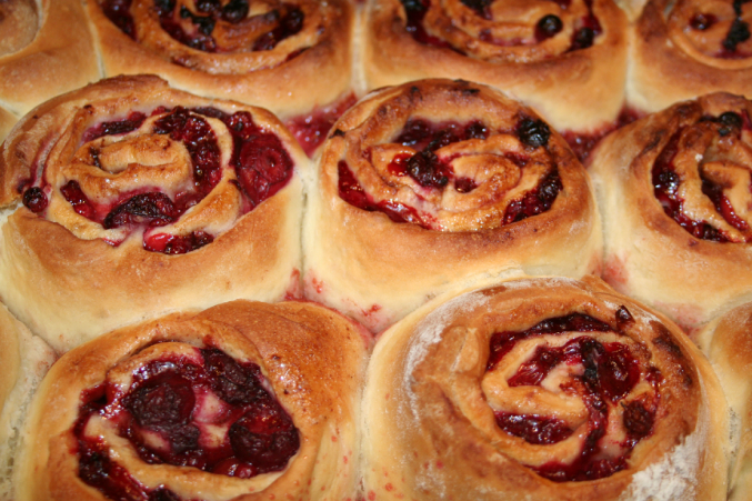 сформировать рулет, разрезать, уложить в форму, смазанную маслом, оставить на пол часа чтоб подошли булки, затем в разогретую духовку до золотистого цвета на 200 градусов.