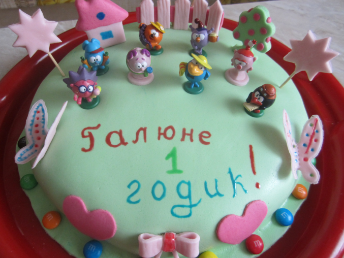 Гостям тортики очень понравились, сказали, что вкусно. Соседка заказывала своей, то говорит, что мой торт вкуснее и мастика вкусная, не сильно сладкая, а у них мастику есть было не возможно. Мне то не с чем сравнивать,т.к. я такие торты раньше не ела и не видела вживую, только в иннете.