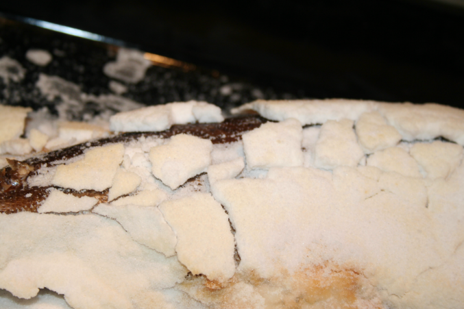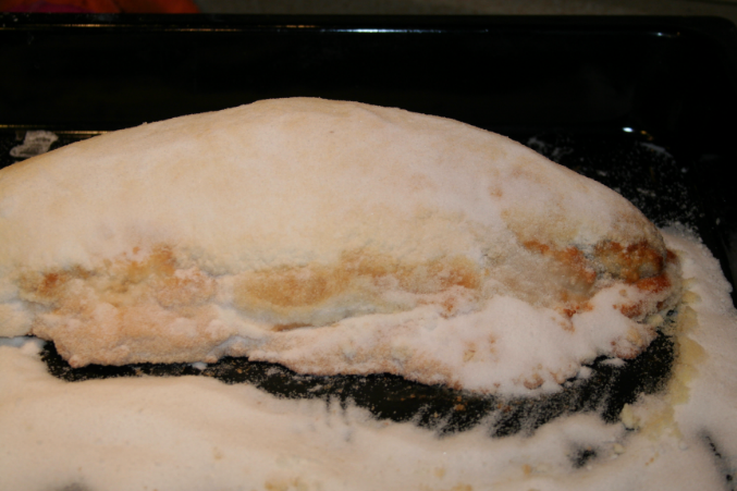 так твоя тупо на соли, а не в соли, так же и рыбу можно , просто на соль положить, а тут совсем другой рецепт)))