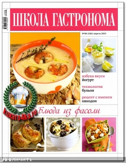 Книги и журналы по кулинарииКулинарный журнал «Школа гастронома«. Журнал для тех, кто любит готовить. Все оригинальные рецепты с фасолью к вашему меню сопровождаются подробным описанием приготовления и красочными фотографиями. Теперь ни для кого не станет проблемой вкусно, красиво и сытно накормить семью или украсить . Тема номера: Блюда из фасоли.