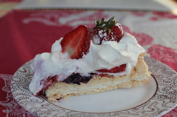 1 ч.л. белого винного уксуса или яблочного (можно лимонный сок)1 ст. мелкого сахарного песка3 ч.л. крахмала200г. жирных сливок 38% (охлажденных)2 ч.л. сахарной пудры с ванилью2 шт. киви200г. клубникиМожно украсить по другому. Главное не отступать от классики - ягоды и тропические фрукты.