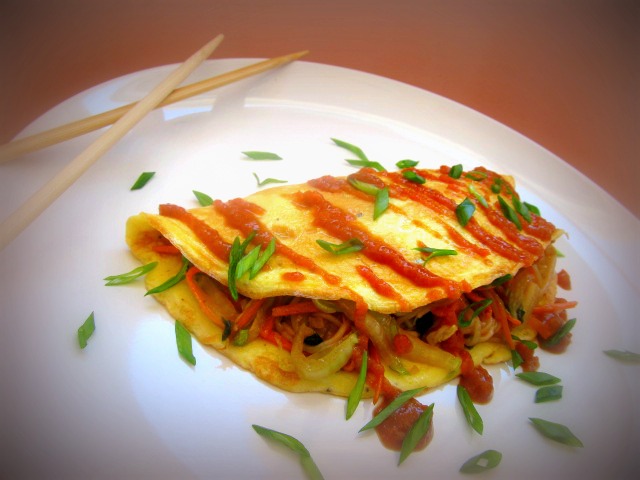 Омусоба- японский омлет с овощами, лапшой и соусом тонкацу