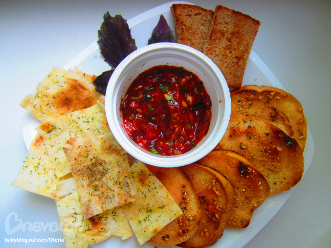 Чипсы из лаваша: Лаваш нарезать квадратами. Смешать оливковое масло с солью и укропом.Намазать смесью квадраты и посушить в духовке минут 5