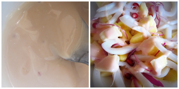 Салат с кальмарами и яблоками под йогуртовым соусом