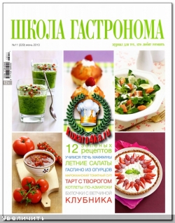 Книги и журналы по кулинарииКулинарный журнал «Школа гастронома«. Журнал для тех, кто любит готовить. Все оригинальные летние рецепты блюд к вашему меню сопровождаются подробным описанием приготовления и красочными фотографиями. Теперь ни для кого не станет проблемой вкусно, красиво и сытно накормить семью или украсить . Тема номера: Встречаем лето.