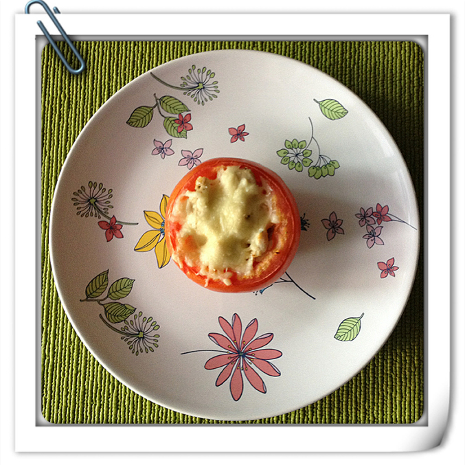 внутри помидор тоже добавляем специи и укладываем курицу,сверху тертым сыром и в духовку при температуре 200гр на 20 минут.