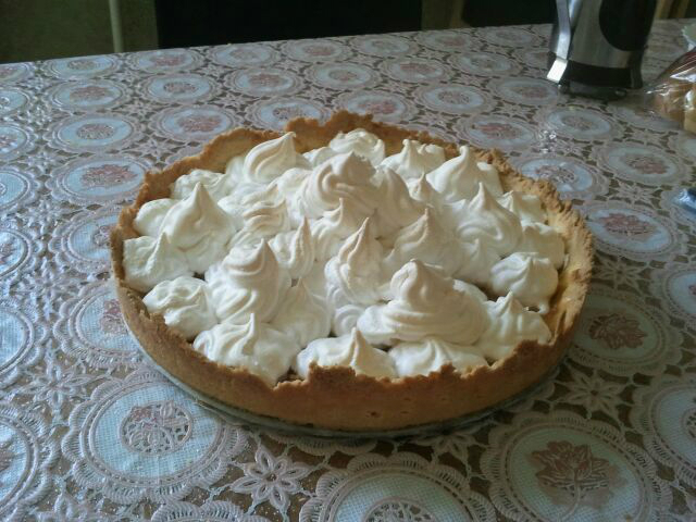 Ингредиенты:Песочное тесто (для формы диаметром 28 см)225 г. мукипол чайной ложки соли155 г. сливочного масла5-6 столовых ложек ледяной водыЛимонный курд3 лимона (125 мл. лимонного сока + цедра одного лимона)400 мл. молока3 столовые ложки картофельного крахмала250 г. сахара4 яичных желтка80 г. сливочного маслаМеренга4 белка200 г. сахараПриготовление:1. Готовим песочное тесто. Достаем из холодильника, раскатываем толщиной в 2-3 мм (это достаточно тонкий слой, если нравится толще - увеличьте количество ингредиентов), выкладываем в форму. Хорошенько придавливаем, чтобы нигде не осталось воздушных карманов. Накалываем вилкой по всей площади. Простилаем пергаментом или фольгой и высыпаем сверху какой-нибудь груз - например, бобовые (фасоль, нут и т.д.), чтобы тесто во время выпечки сохранило форму. Выпекаем в духовке при 200 градусах 20-25 минут, до готовности.