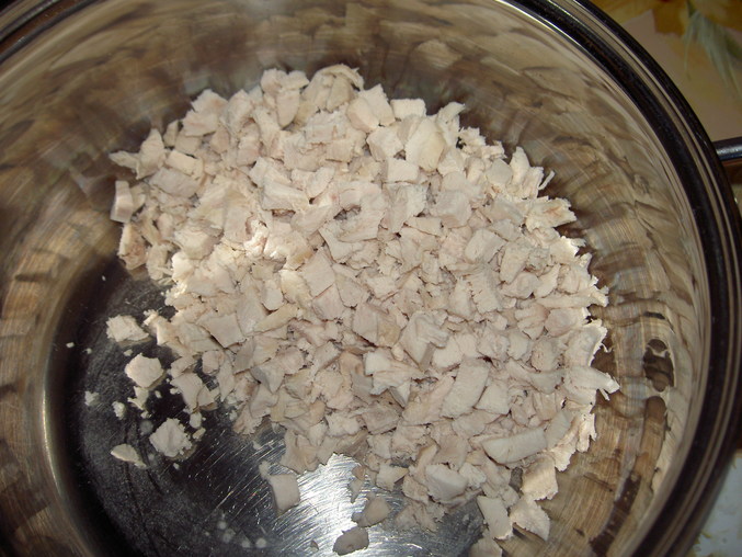 Куриное филе мелко нарезать.