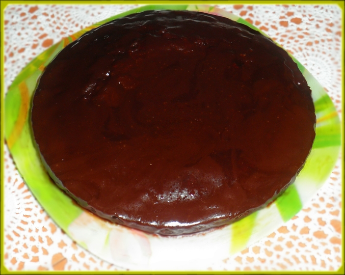 Смешать все ингридиенты для теста. Настоять тесто минут 15. Форму для выпекания смазать сливочным масло. Вылить тесто (оно должно получится довольно жидким) и на 200 градусов в духовку примерно минут на 30-40 (я не засекала время, к сожалению(( ). Для начинки нужно растопить масло, добавить в него сахар, после положить сметану и какао, подогреть и довести до кипения. Когда наш пирог испёкся минут 20 пусть постоит, а после залить его глазурью! Всё готово!