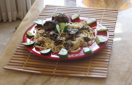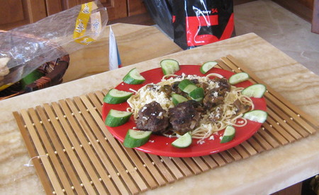 500гр фарша из телятины, одна большая белая луковица- мелко нарезанная, два ломтика зернового хлеба, одно яйцо, соль перец, замочит хлеб в воде на минуту, затем отжать воду, добавить яйцо соль перец, нарубленный лук, фарш, хорошо перемешать, придать форму и выложить на заранее разогретую сковороду взбрызнутую ол, маслом) на максимальном огне обжаривать с двух сторон до приобретения необходимого цвета, затем перевести на минимальный огонь, накрыть крышкой и томить еще минут 15, что бы лук хорошо пропекся)