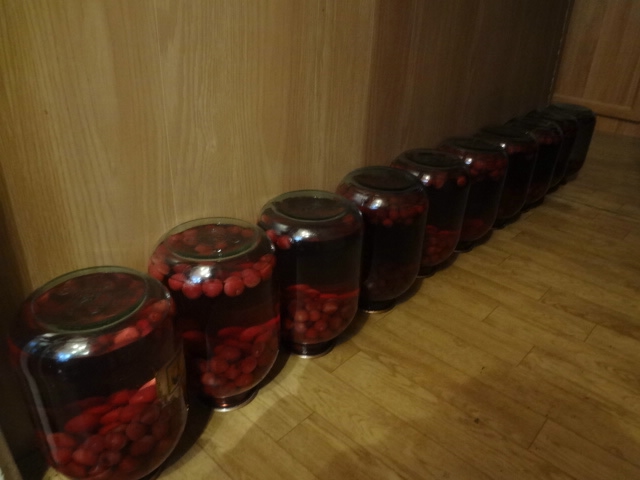 Заготовки (варенье, соленья, консервирование, заморозка)Первые заготовки на зиму. Вишневый компот. на 3 литра воды 2,5 стакана сахара. Банки я не бланширую,вишня с косточкой. Заливаю горячим сиропом и закатываю.