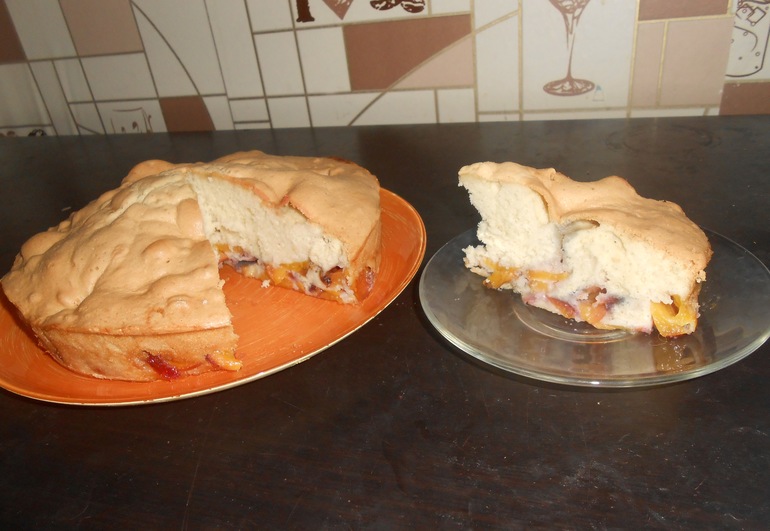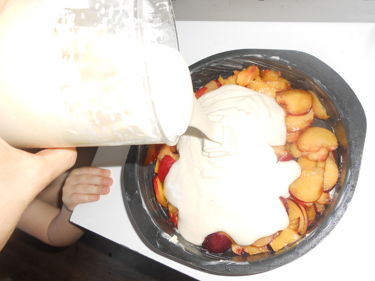 На фото я поленилась располагать начинку между слоями, поэтому нектарины все на дне.