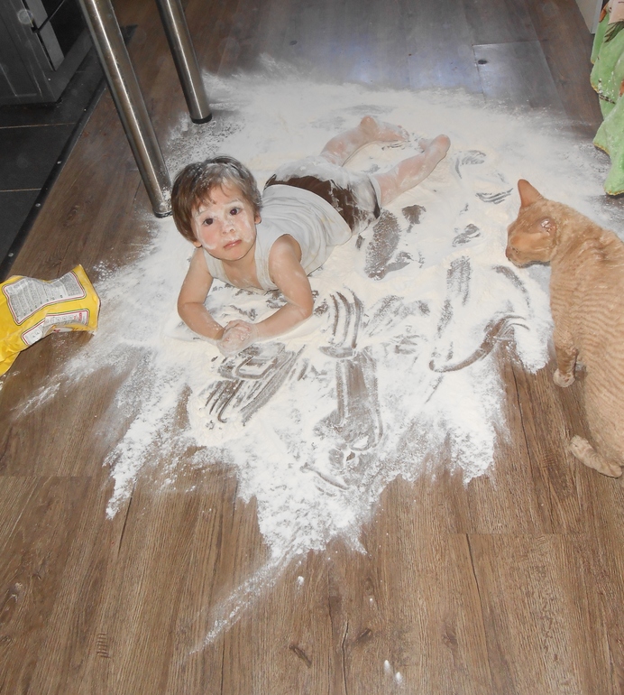 Ну дала поиграть минут 5, чёуж. Раз-два-три-четыре-пять, мы спокойно уберем, будет чисто все опять… ля-ля-ля…Старалась не раздражаться, когда Ленёк еще мешал и фотать, потому что мама гворила, что тесто всё чувствует. Я уж думала, все пропало, да и начинка неопробованная… Но нет, поднялся пирожок как редко когда, пах завлекательно и на вкус не разочаровал.