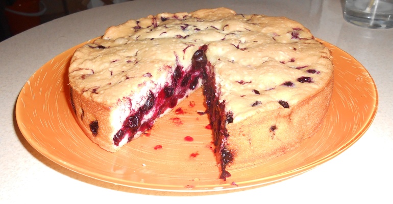 А готовится он так: 3 яйца с неполным стаканчиком сахара, щепоткой ванилина и несколькими крошками соли взбиваю. Добавляю стакан муки - миксую - гашеную уксусом соду - миксую. Консистенция сметаны. Раньше добавляла чуть-чуть разрыхлителя, но не понравилось последние 2-3 раза, попробовала вот соду, а можно вообще ничего такого не класть.