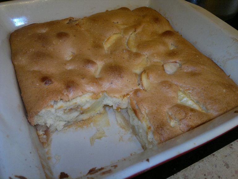 Нарезаем яблоки тонкими дольками и выкладываем их на заранее смазанный маслом противень. Взбиваем хорошо яйца. Добавляем туда сахар+ванильный сахар. Взбиваем. Затем добавляем муку. Взбиваем. Заливаем тестом яблоки так чтобы покрыть их полностью и ставим всё это в духовку на 180 градусов - 35 минут. Вынимаем и наслаждаемся ;)![]()