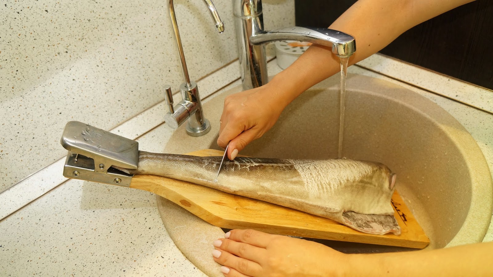 Она очень длинная, на ней практически помещается рыбина весом 3,5 кг (форель). У нее очень мощный зажим, и даже такая большая рыбина не выскальзывает. Чистить рыбку стало одно удовольствие! :)) а раньше эта рыба скакала по раковине, колола и царапала руки.