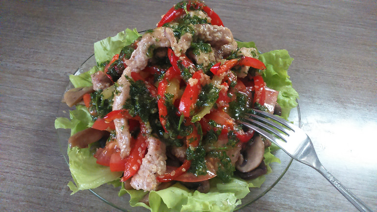 Салат из свинины с кунжутом и овощами
