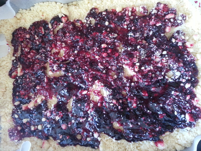 Это очень вкусно) постоянно делаю с разными начинками. Только белки я не убираю. И нижний слой делаю из обычного теста, потом начинка, потом посыпка. Он снизу немного приподнимается и получается тоже очень вкусно.Надо будет как-нибудь выложить рецептик тоже)