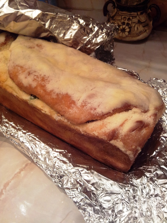 Лучше, чтобы начинка равномерно распределилась в тесте, поэтому тесто раскатываем в пласт, высыпаем на него всю начинку и вмешиваем,не щадя живота своего.В этом году-это было эпическое зрелище, я уже не понимала что во что я вмешиваю,но будет вкусно (я верю))). Формируем поленце/батончик, я пеку в форме из под хлеба, поэтому у меня буханка. Ладонью сделать продольное углубление вдоль батончика, чуть сбоку от центра, хотя, совсем не обязательно-это всего лишь дань традициям. Смазываем форму маслом, ставим штолен расстояться минут на 20, греем духовку до 180гр.