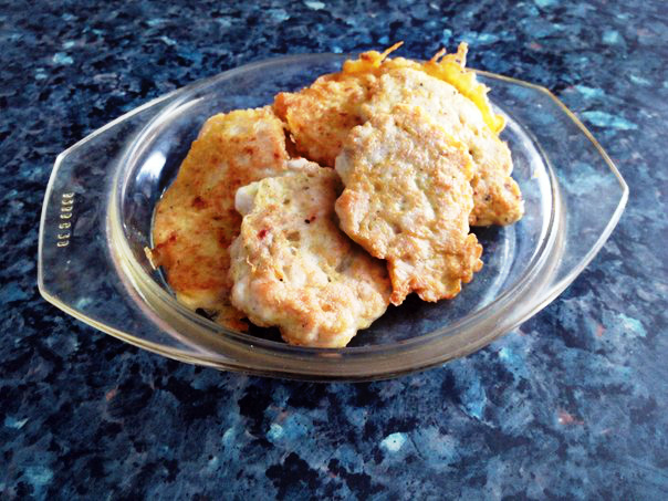 А слепила я их из: куриное филе 700 гр.,лук 1 - 2 шт., крахмал 2 ст. л.,яйцо 1 шт.,зелень,специи.