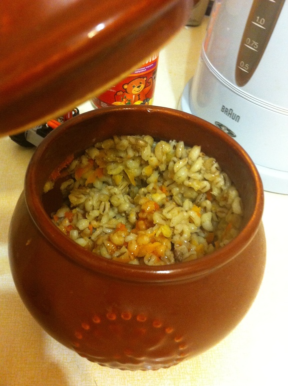 Так же, как и гречку) мясо кусочками обжариваю, кладу на дно, в варианта с гречкой морковь с луком обжариваю - кладу вторым слоем, сверху сырая гречка, заливаю до верха бульоном/водой, в котором соль/перец размешаны. В варианте с перловкой сперва замачиваю ее на 3-4 часа и потом мешаю с обжаркой. И точно так же в горшочек-бульон-в духовку)