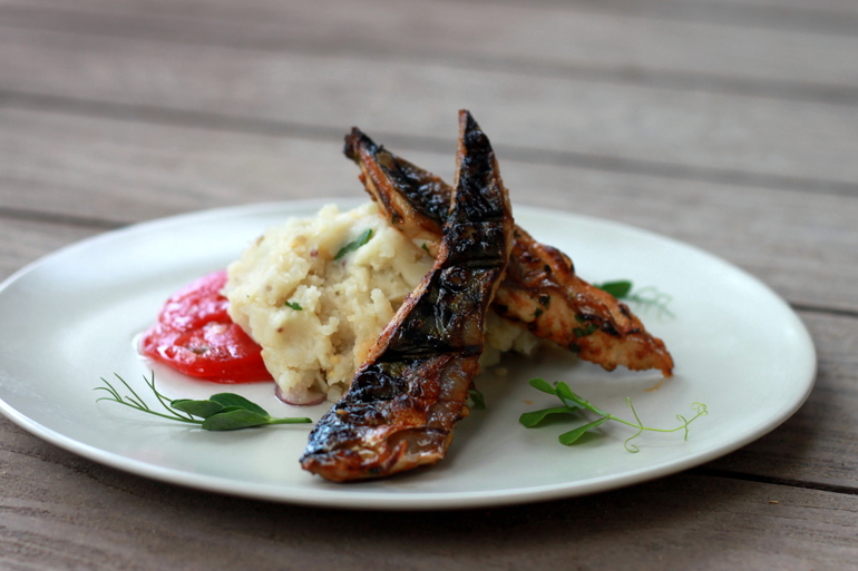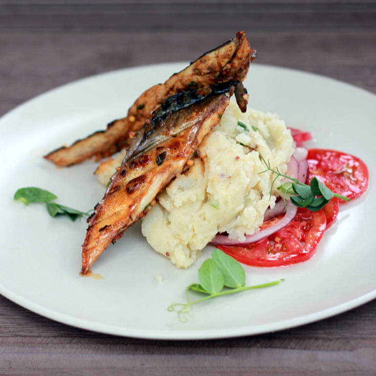 Скумбрия с мятым картофелем