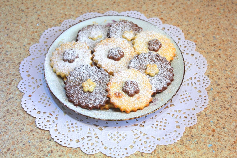 Готовое остывшее печенье посыпать сахарной пудрой. Приятного чаепития!