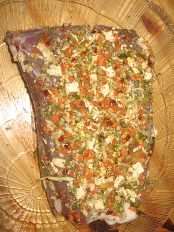 Густо намазываем, даже вдавливаем в мясо эту ароматную смесь и оставляем на 1 час, чтобы мясо пропиталось ароматами.