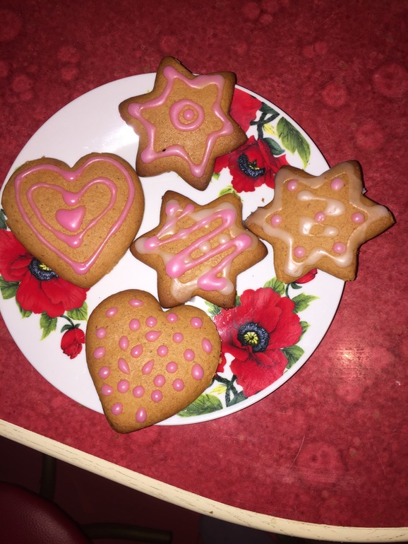 Печенья, пирожные, торты, пончики, кексыРешила попробовать сделать пряники)) Сами пряники классные получились)а вот с украшением беда((глазурь растекается и руки у меня не из того места(( Или в другом проблема? Буду сегодня еще пробовать)