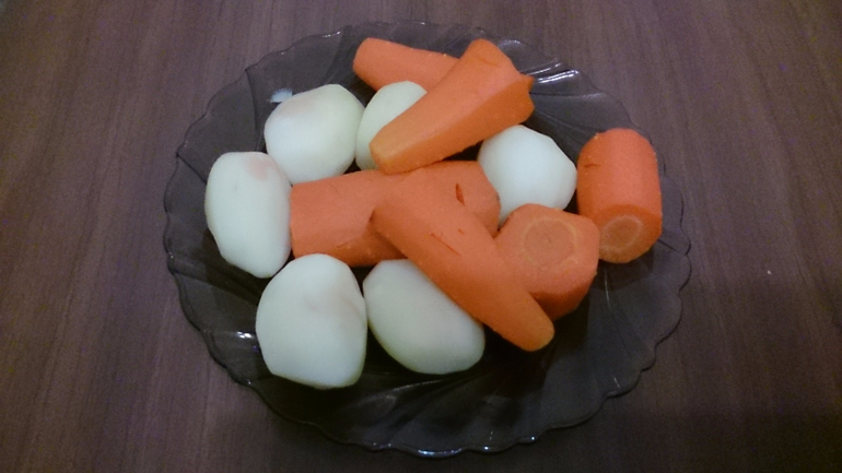 А я сразу режу сырые картошку и морковь кубиками и ставлю на пару варить.