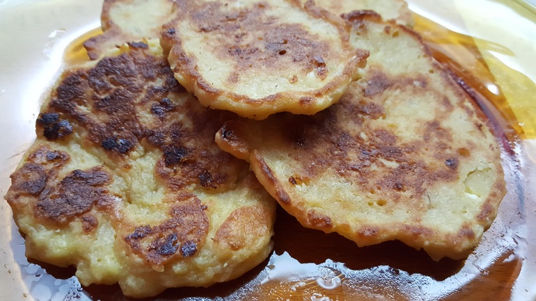 Сырники (или оладьи?) без мукИ или как без мУки накормить детей полдником))
