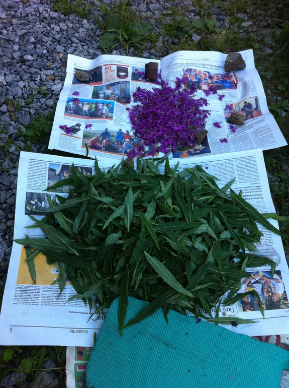 Сначала снимаем листочки и цветочки со стебля кипрея, моем листья и оставляем его сушиться (подвяливаться) на свежем воздухе (но только без попадания солнечных лучей)