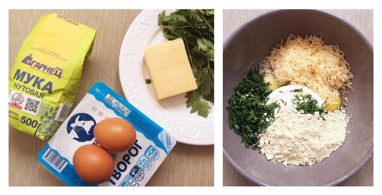 Смешать творог, яйца, мелко нашинкованную зелень, натертый на мелкой терке сыр и муку. Муку добавляйте на усмотрение. "Тесто" должно получиться липким и формировать шарики надо влажными (не мокрыми!) руками.