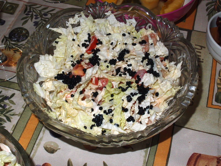 Я готовлю тоже только оливье,приближенный к настоящему,только у меня там рябчик или перепел,перепелиные яйца,салатный листья,каперсы,с огурец,телячий или ягнячий язык,раковые шейки и домашний майонез,но икру,если не удалось купить свежей осетровой добавляю просто красную. все таки вкус более яркий,чем у белковой из водорослей. попробуйте:-) хотя последние годы заметила,что черную к праздникам легко купить без поисков, в конце концов в оконном доме заказать,может у вас в городе есть филиал