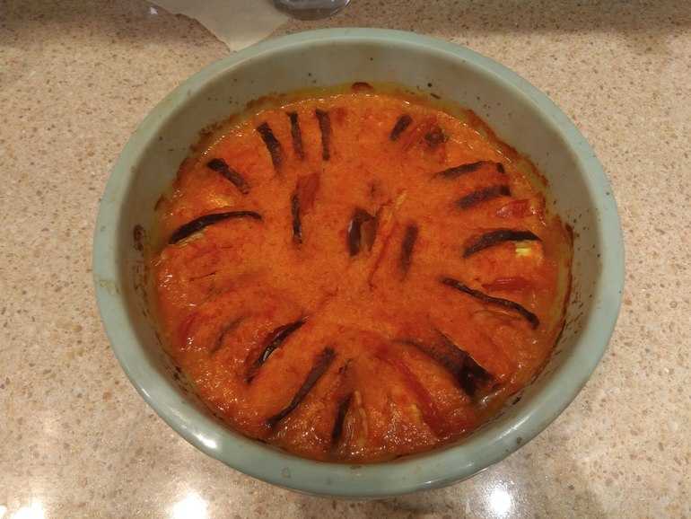 15. Форму накрываем, ставим в духовку и запекаем рататуй примерно час или чуть дольше, до готовности овощей.