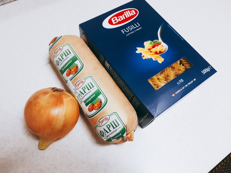Для этой вкуснятинки нам понадобятся макароны, фарш и лук. Соль и черный перец бонусом)