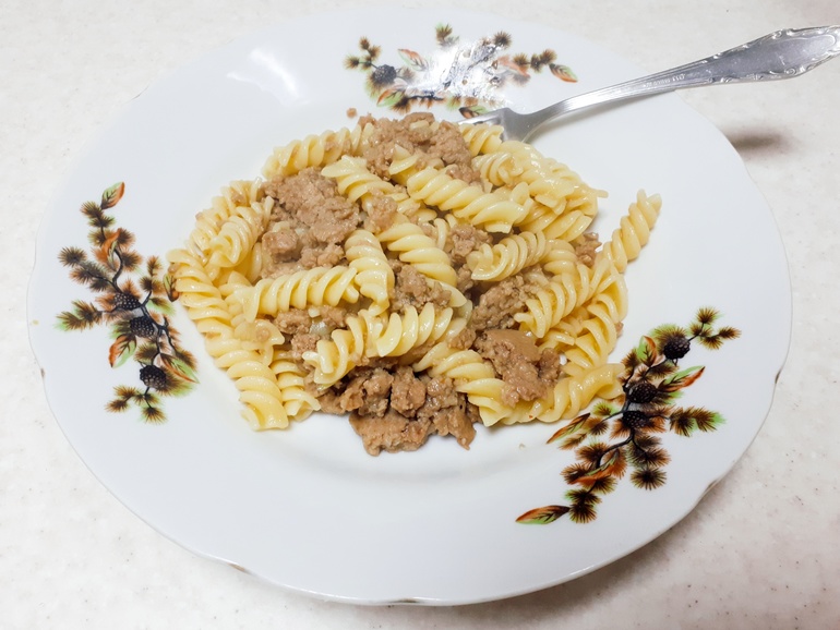 Я готовлю на двух комфорках. На одной варятся макароны, на другой готовится фарш.