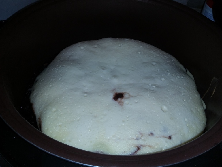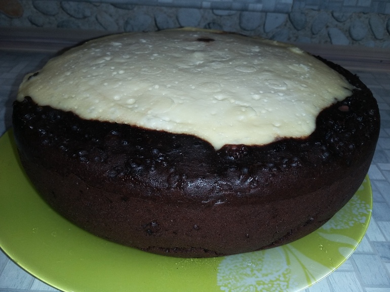 Получается рыхлое тесто внизу, дальше шоколадный слой как брауни, пышный творог и шоколадная глазурь сверху. М-м-м! А какой аромат на кухне!