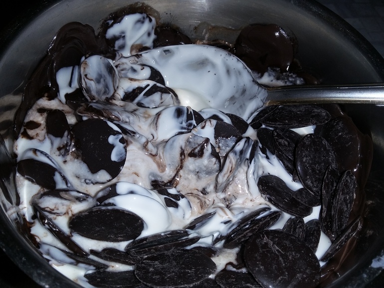 Растопить 200 г шоколада с 1 ст.л. сливок: